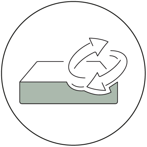 High density foam 50 kg/m³ composed of soybean oil. The non-GMO soybean favours air circulation through its cellular structure and offers greater elasticity, which translates into great adaptability to the body.
