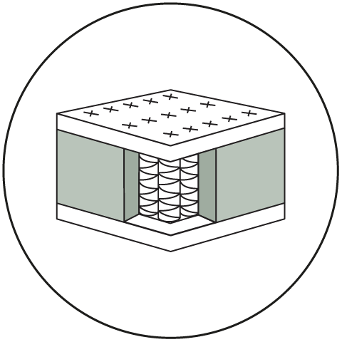 High-density frame covering the pocket spring core. Its structure extends the life of the mattress and ensures greater stability and resistance.