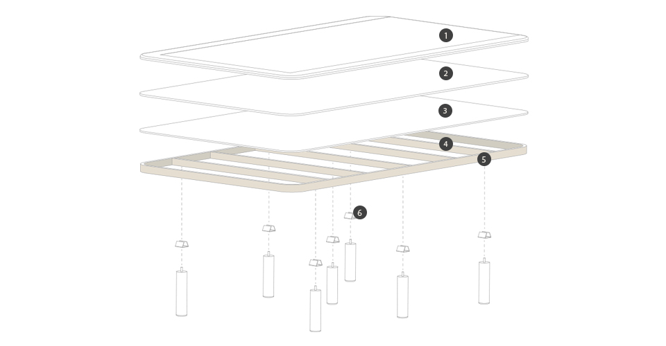 Fastening system designed and patented by Sonpura. 100% stability, eliminating any movement of the base for a more comfortable rest.