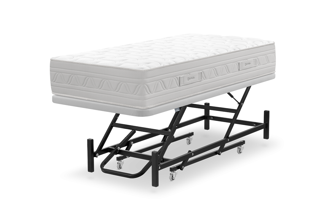 El sistema de elevación con pedal permite levantar la base de forma cómoda, rápida y segura. Con una ligera presión del pie, el mecanismo se activa suavemente, elevando la base sin necesidad de realizar esfuerzo físico con los brazos o la espalda. Este sistema está diseñado para facilitar el uso diario, especialmente en situaciones donde la ergonomía y la seguridad son importantes.