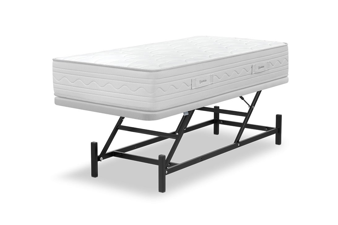 Ce mécanisme est conçu pour faciliter les tâches de nettoyage et d'entretien, en permettant d'accéder facilement à la partie inférieure du lit. Le soulèvement s'effectue de manière ergonomique, évitant les postures forcées et réduisant la nécessité de se courber le dos.