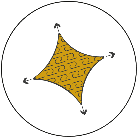 Système de fixation conçu et breveté par Sonpura. Stabilité à 100 % éliminant tout mouvement de la base pour un repos plus confortable. 4 points de renfort.